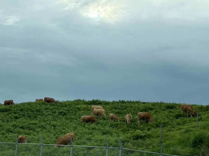 宿に向かう道すがらでは、牛さんたちも🐂晩ごはん