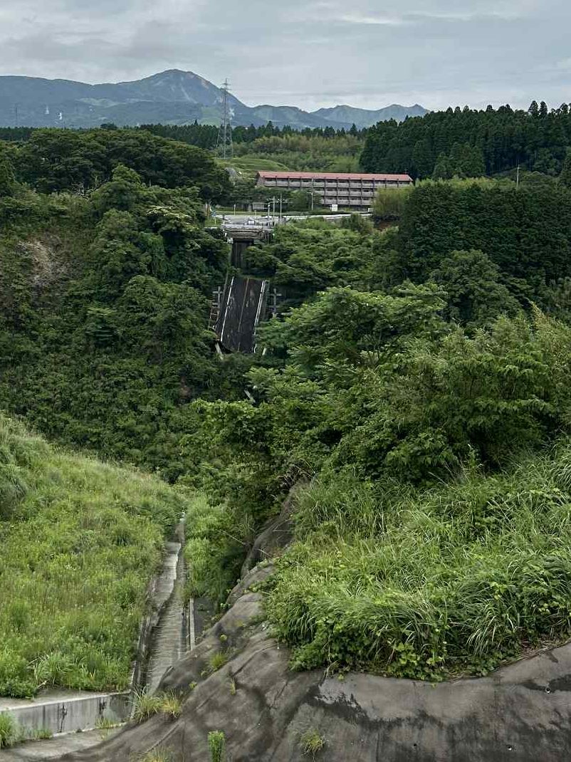 熊本大地震で崩壊した阿蘇大橋跡、