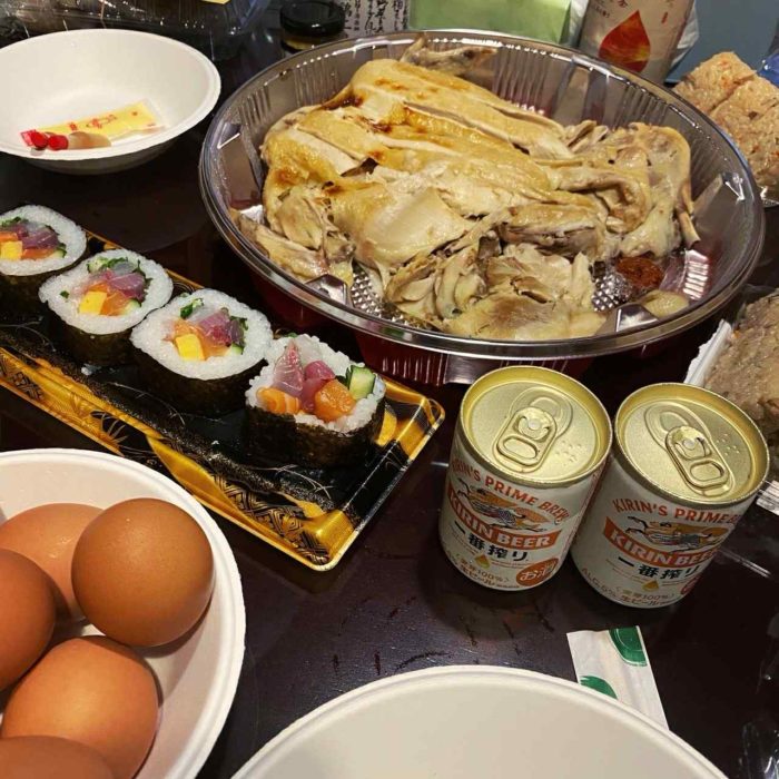 1匹丸ごと蒸し鶏、豚足、蒸したまご、